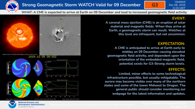 Strong (G3) Geomagnetic Storm WATCH Valid for 09 Dec 2025…. December 8, 2025December 8, 2025 Ken McCormick