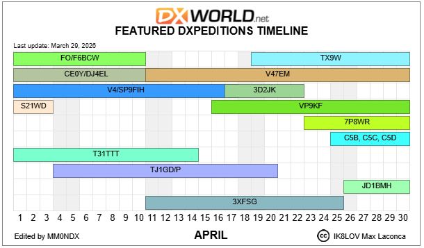 As mentioned I will no longer be publishing a comprehensive list of DX, Contests or Special Events.   However I will list below the sites where you can find the information I use weekly to bring you the info.
